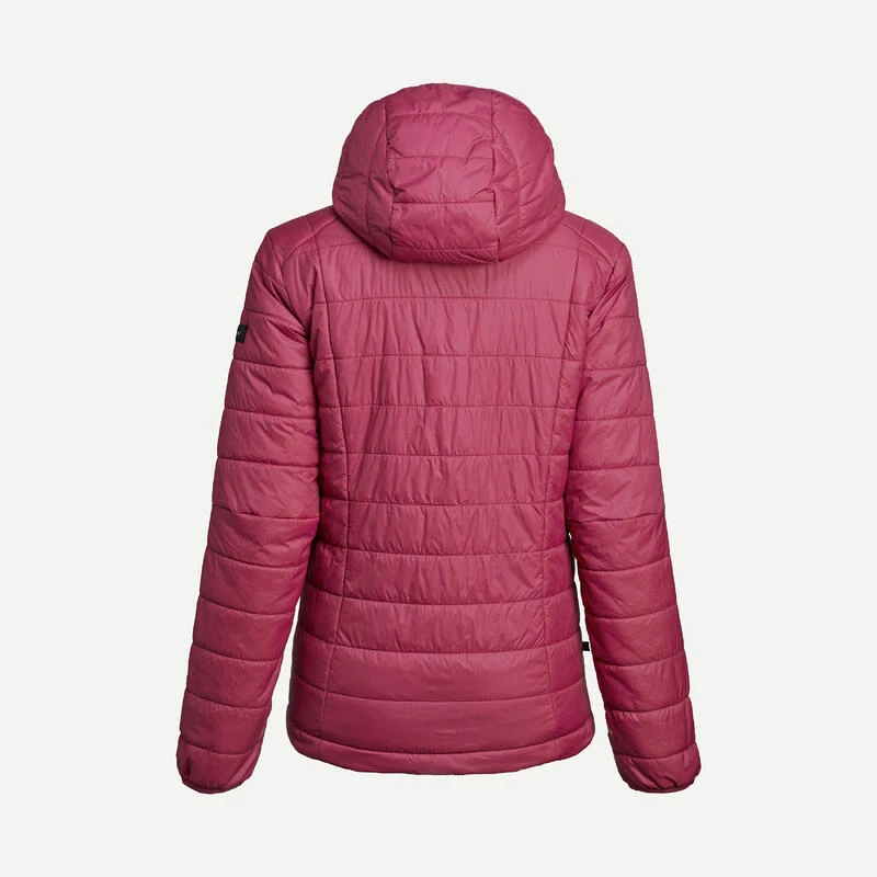 Nous utilisons une ouate 100% polyester de 125 g/m² sur le corps et de 100 g/m² sur les manches et la capuche. La ouate est composée de fibres hélicoïdales siliconées qui lui apportent une grande compressibilité et une forte résilience. Malgré sa finesse, elle possède un haut niveau d’isolation grâce à l’air emprisonné à l’intérieur tout en conservant un faible poids. Elle présente l’avantage de conserver sa chaleur même mouillée.