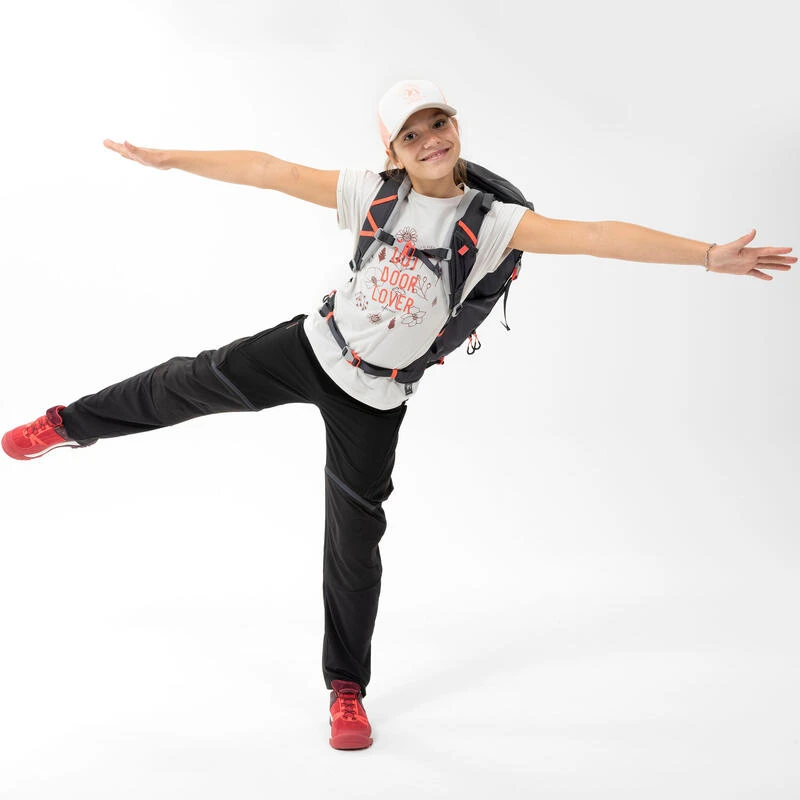 Notre équipe, parents de jeunes randonneurs, a conçu ce tee-shirt pour les jeunes randonneuses qui souhaitent allier confort et style.Idéal pour vos enfants lors de leurs activités outdoors. Ce t-shirt leur apportera également une liberté de mouvements et de la légèreté.