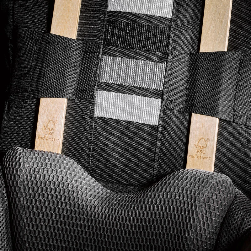 – des tests de résistance à la rigidité et à la flexion de la structure en bois (au niveau du dos du sac).