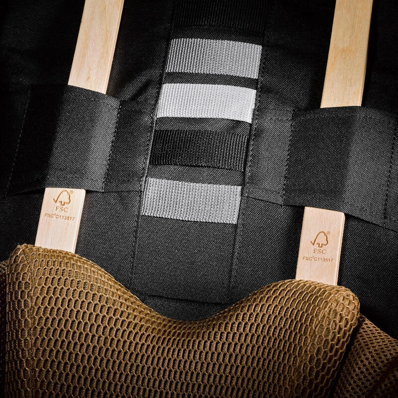 – des tests de résistance à la rigidité et à la flexion de la structure en bois (au niveau du dos du sac).